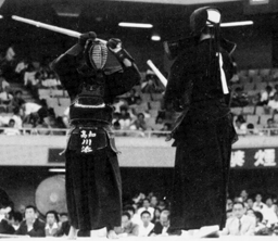 Csak a harmaik hosszabbítás során történt találat. Meglelvén végre a régen várt lehetőségét, Kawazoe, ahogy egy sarokba szorított kobra csap le áldozatára, úgy vágta meg Akashi men-jét. A maratoni mérkőzés csaknem 20 percig tartott. Kawazoe nem volt teljesen passzív, de folyamatosan nyomást gyakorolt ellenfelére és okos menővereiből fakadó áthatolhatatlan védelme által mindvégig fenntartotta a jodan tartást. A másik elődöntős küzdelemben Yoko szerencséje elfogyott Miyazawá-val szemben, aki kote és men találattal búcsúztatta az 1974-es bajnokot. E meglepően egyoldalú küzdelem Miyazawa-t juttatta a döntőbe Kawazoe ellene.